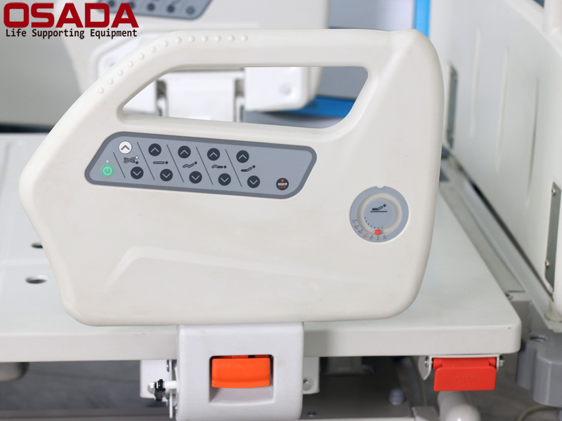 1.Chức năng: Giường hồi sức tích cực điện 5 chức năng có thể điều chỉnh độ cao của giường, góc của tấm lưng và tấm chân theo ý muốn, có thể điều chỉnh độ cao của lưng và chân thông qua bộ điều khiển và thay đổi chiều cao giường.