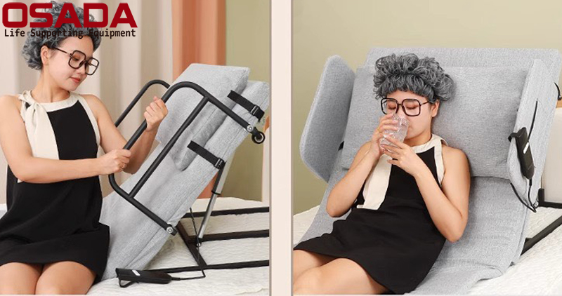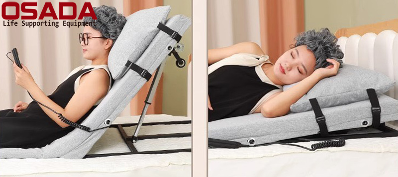 Giường bệt nâng điện OSADA SD-12E là thiết bị nâng hạ chuyển tư thế nằm sang ngồi dành cho người bệnh, người bị liệt, người bị thoát vị đĩa đệm, bị đau lưng hoặc mới phẫu thuật xong. Dễ dàng đặt trên mặt phẳng, trên giường hoặc ghế rộng.