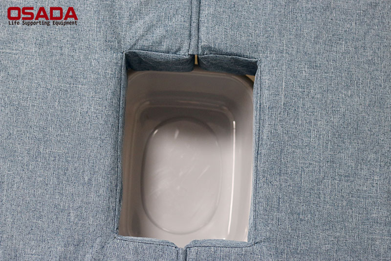 Giường y tế điện cơ OSADA SD-16E đi kèm thiết kế có vị trí đặt chậu gội đầu chuyên dụng nâng đỡ đầu người nằm giúp người nhà có thể gội đầu thực hiện các bài tập Masage da đầu cho người bệnh cảm thấy dễ chịu và sảng khoái hơn.